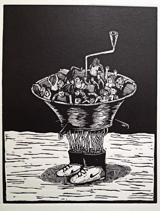 Les Soldes / Linogravure 30x40cm / 2014 / 6ex